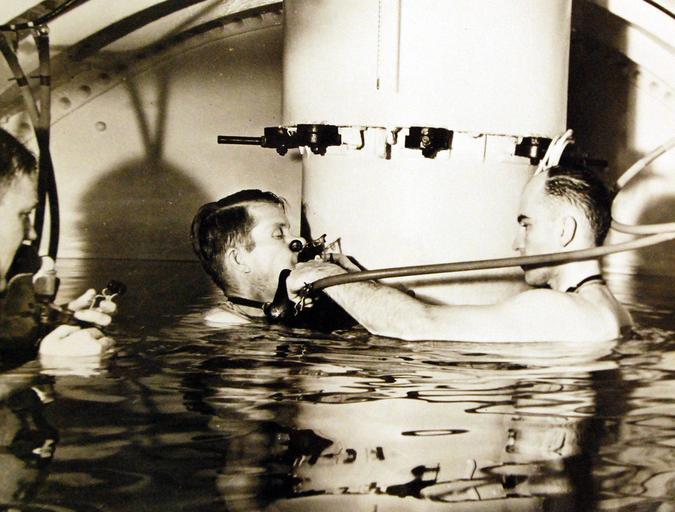 Keywords: Lot-9434-24: These Men Are In Training For Life On A U.S. Submarine. The modern submarine is playing a big part in the war on the seas. Its quarry is all of the enemy’s navy but its aircraft. It seeks convoys and unprotected merchant ships, harries fleets, and sometimes engages in deadly underwater duels with others of its own kind. Among the world’s navies, U.S. submarines are considered supreme. One reason for this supremacy is the strenuous training of their crews. The training, shown in this set of 18 pictures, is given the submarine candidate at U.S. Navy’s Submarine School at New London, Connecticut, in the northeastern section of the United States. Shown: An instructor at the New London Submarine School adjusts a Momsen Lung on a student at the 100-foot level of the tower. The student will enter the tower and ascend slowly to the top. It is important to rise slowly, so that his body will get accustomed to the depth, thus avoiding the dreaded “bends” (cramps) or burst lungs. Each of the students must know how to ascend from great depths if ever he has to escape from a disabled submarine. Office of War Information Photograph, April 22-28, 1942. (2016/01/08). Lot-9434-24: These Men Are In Training For Life On A U.S. Submarine. The modern submarine is playing a big part in the war on the seas. Its quarry is all of the enemy’s navy but its aircraft. It seeks convoys and unprotected merchant ships, harries fleets, and sometimes engages in deadly underwater duels with others of its own kind. Among the world’s navies, U.S. submarines are considered supreme. One reason for this supremacy is the strenuous training of their crews. The training, shown in this set of 18 pictures, is given the submarine candidate at U.S. Navy’s Submarine School at New London, Connecticut, in the northeastern section of the United States. Shown: An instructor at the New London Submarine School adjusts a Momsen Lung on a student at the 100-foot level of the tower. The student will enter the tower and ascend slowly to the top. It is important to rise slowly, so that his body will get accustomed to the depth, thus avoiding the dreaded “bends” (cramps) or burst lungs. Each of the students must know how to ascend from great depths if ever he has to escape from a disabled submarine. Office of War Information Photograph, April 22-28, 1942. (2016/01/08). |