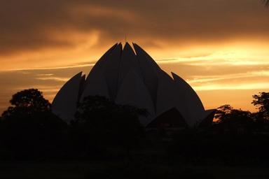 Keywords: Lotus-Temple-Sunset-02.JPG Sunset at the Bahá'í House of Worship New Delhi India own 2009-08-27 Wiki-uk Own work all rights released Public domain Sunset at the Lotus Temple