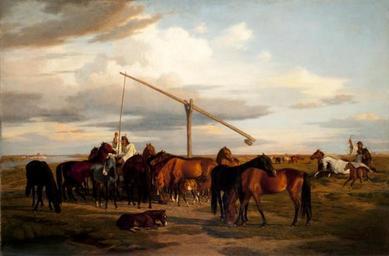 | Keywords: Lotz Watering the Horses on the Puszta 1860s.jpg Artwork Creator Károly Lotz s 1860 Oil on canvas Size cm 190 125 Institution Gábor Kovács Art Collection Budapest object history exhibition history credit line bottom right f Lotz K accession number 000175 http //www gaborkovacsartcollection com/ Gábor Kovács Art Collection http //www gaborkovacsartcollection com/artworks/lotz-karoly/watering-the-horses-on-the-puszta Info http //www gaborkovacsartcollection com/sites/default/files/imagecache/art_node_600/art/upload/000175_s jpg Pic PD-old-100 Paintings by Károly Lotz in the Gábor Kovács Art Collection Budapest 1860s paintings in Hungary Watering in art Puszta in art 19th-century oil on canvas paintings in Hungary People with horses in art Shadoofs in Hungary Shadoofs in art |