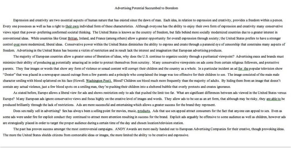 Keywords: Loudy Censorship.jpg en Censorship in American Advertising conservative American ideas lack of expressional freedom Chelsea Loudy LoudyC3 2009-09-23 Advertising Censorship