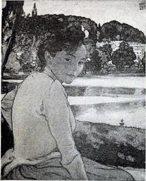 | Keywords: Louis Anquetin Femme dans paysage.jpg fr Femme dans paysage reproduction en noir blanc l'original est une peinture à l'huile en couleur en black and white reproduction of Femme dans un paysage Woman in Landscape 1889 oil canvas Private Collection http //www archive org/stream/catalogueillust1890soci page/126/mode/2up Salon de 1890 Creator Louis Anquetin 1889 PD-old Louis Anquetin | ||||