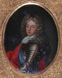 Keywords: Louis Auguste de Bourbon, Légitimé de France, duc du Maine, Mignard.jpg Portrait of Louis Augutse de Bourbon Duke of Maine 1670-1736 c 1690 Oil on canvas cm 23 19 Institution Musée Condé http //www thepeerage com/220220_001 jpg 00000077287 other versions <gallery>Philippe d'Anjou jpg</gallery> PD-old-100 Portraits by Pierre Mignard French paintings in the Musée Condé 17th-century portrait paintings in the Musée Condé Louis Auguste Duke of Maine 1690c 1690s oil on canvas paintings in France Portrait 1690s portrait paintings from France Male 17th-century oil oval portraits of men at half length 17th-century oil portraits of men at half length in armour 17th-century portrait paintings in France Allonge wigs in paintings Golden painting frames Red drapery in portrait paintings Sash of the Order of the Holy Spirit in portrait paintings |