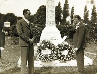 | Keywords: louis e. e slim gordon special collection photo aviation aviators aviator mechanic louis gordon louisgordon louis 'slim' gordon louisslimgordon lou gordon lougordon slim gordon slimgordon wilmer lower stultz wilmerlowerstultz wilmer lower 'bill' stultz wilmerlowerbillstultz wilmer l. stultz wilmerlstultz wilmer stultz wilmerstultz bill stultz billstultz stultz john alcock johnalcock alcock headstone john william alcock johnwilliamalcock john w. alcock johnwalcock j.w. alcock jwalcock manchester southern cemetery manchestersoutherncemetery manchester monochrome Catalog #: 09_01533 Title: Louis E. ""Slim"" Gordon Special Collection Photo Additional Information: Lou Gordon (on left) and Wilmer 'Bill' Stultz at the grave of Sir John W. Alcock, Louis Gordon was the co-pilot/ mechanic with Wilmer Stultz on the 1928 Transatlantic flight of the Fokker F7 ""Friendship"" which flew from Newfoundland to Wales in 1928. Amelia Earhart was a passenger on this flight and it is remembered as the first air crossing of the Atlantic by a female. Tags: Louis E. ""Slim"" Gordon Special Collection Photo Repository: San Diego Air and Space Museum Archive Catalog #: 09_01533 Title: Louis E. ""Slim"" Gordon Special Collection Photo Additional Information: Lou Gordon (on left) and Wilmer 'Bill' Stultz at the grave of Sir John W. Alcock, Louis Gordon was the co-pilot/ mechanic with Wilmer Stultz on the 1928 Transatlantic flight of the Fokker F7 ""Friendship"" which flew from Newfoundland to Wales in 1928. Amelia Earhart was a passenger on this flight and it is remembered as the first air crossing of the Atlantic by a female. Tags: Louis E. ""Slim"" Gordon Special Collection Photo Repository: San Diego Air and Space Museum Archive |