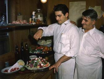 | Keywords: florida state library and archives of florida statelibraryandarchivesofflorida louis pappas louispappas michael pappas michaelpappas greek salad greeksalad chefs greek americans greekamericans riverside cafe riversidecafe tarpon springs tarponsprings pinellas county pinellascounty 1940s transparencies joseph janney steinmetz collection josephjanneysteinmetzcollection restaurants greek food greekfood indoor Persistent URL: www.floridamemory.com/items/show/245894 Local call number: JJS0918 Title: Louis and Michael Pappas preparing Greek salad at Riverside Cafe in Tarpon Springs, Florida Date: April 12, 1947 Physical descrip: 1 transparency - col. - 4 x 5 in. Series Title: Joseph Janney Steinmetz Collection Repository: State Library and Archives of Florida, 500 S. Bronough St., Tallahassee, FL 32399-0250 USA. Contact: 850.245.6700. Archives@dos.myflorida.com Persistent URL: www.floridamemory.com/items/show/245894 Local call number: JJS0918 Title: Louis and Michael Pappas preparing Greek salad at Riverside Cafe in Tarpon Springs, Florida Date: April 12, 1947 Physical descrip: 1 transparency - col. - 4 x 5 in. Series Title: Joseph Janney Steinmetz Collection Repository: State Library and Archives of Florida, 500 S. Bronough St., Tallahassee, FL 32399-0250 USA. Contact: 850.245.6700. Archives@dos.myflorida.com |