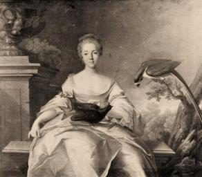 | Keywords: Louise Dupin Chenonceau.jpg Artwork Creator Jean-Marc Nattier Louise Dupin Tableau de Madame Dupin 1706-1799 Peinture de Jean-Marc Nattier avec la collaboration de sa fille Catherine Pauline Nattier 1725-1775 Ce portrait décorait la chambre de Madame Dupin à Chenonceau Il a été exposé lors de la manifestation consacrée à Jean-Jacques Rousseau au château de Chenonceau en 2012 Robert Ranjard Le secret de Chenonceau Éditions Gibert-Clarey à Tours 8 juin 1976 256 pages année première édition 1950 <br />http //artemis austincollege edu/acad/cml/cmanley/Dupin/imagesMmeDupin htm Iconographie Madame Dupin ~ 1735 Oil on canvas Private collection PD-old-100 Works after Jean-Marc Nattier Louise Marie Madeleine Fontaine 1730s oil on canvas paintings in France Portrait 1730s portrait paintings from France 18th-century oil portraits of sitting women at three-quarter length 1735c 18th-century portrait paintings in France 1735c 18th-century portrait paintings with birds 1735c Black and white reproductions of portrait paintings in color 1735c Portrait paintings of women of France Dupin Louise Portrait paintings of women with birds 1735c Portraits with garden vases 1735c |
