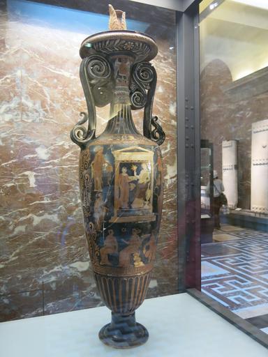 | Keywords: Loutrophore apulienne à figures rouges (Louvre, K 77).jpg  loutrophoros with red figurs A loutrophoros carry bathwater was a distinctive type of Greek pottery vessel characterized by an elongated neck with two handles The loutrophoros was used to hold water during marriage and funeral rituals Circa 340 - 330 BC Tarente Apulia Italy Buy collection Piot 1876 Louvre museum Paris France MNB 1148 K 77 Loutrophore apulienne à figures rouges Une loutrophore porte bains était un type particulier de vase grec caractérisé par un long col et deux anses Il était utilisé pour transporter l'eau pour les cérémonies de mariages ou funèbres Vers 340 - 330 av J -C Tarente Apulie Italie Achat collection Piot 1876 Musée du Louvre MNB 1148 K 77 sf 2015-12-16 Tangopaso MNB 1148 K 77 Greek antiquities in the Louvre - Room 9 Loutrophoroi Ancient Greek pottery in the Louvre 340s BC pottery in France |
