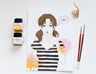 Keywords: <a href="http://mornings-with-coffee.tumblr.com/post/73713182954/love" rel="nofollow">mornings-with-coffee.tumblr.com/post/73713182954/love</a> girl illustration drawing stripes manga watercolors watercolours shoujo