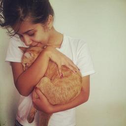 Keywords: love cats child cat hug affection yellow cat good morning kiss