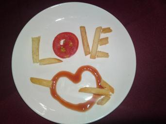 Keywords: love fries heart ketchup food fried meal lunch cuisine delicious plate romantic restaurant