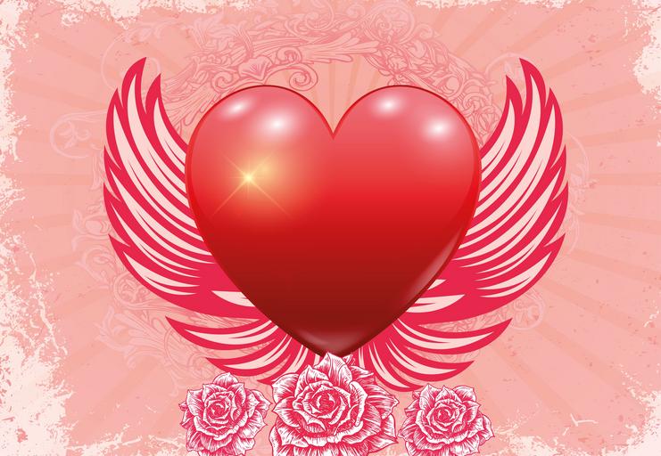 Keywords: love heart wing valentine's day background romance luck red peach map greeting card loyalty romantic affection tenderness declaration of love i love you grunge vintage
