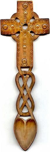Keywords: Love spoon.jpg A love spoon is an ornately carved spoon traditionally made from a single piece of wood by young men especially in Wales as a love token for their sweethearts to show their affection and intentions own 2006-06 José-Manuel Benito Locutus Borg Image LoveSpoons JPG Culture of Wales Hearts in art Wooden spoons Knots in art and decoration Carrick bends Love tokens |