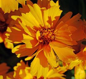 Keywords: low girl eye summer flower shrub home garden golden yellow petals summer garden plant pointed flower ornamental plant floristry flowers bloom bright close blossom bloom hispanic enlarge view blossomed