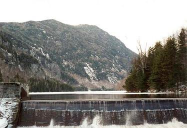 Keywords: Lower Ausable Lake view of Mt Colvin.jpg Mt Colvin seen from Lower Ausable Lake Adirondacks NY own my own photo 1995-04-15 petersent Ausable Lakes Mount Colvin Essex County New York