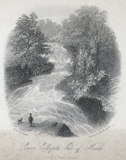 | Keywords: Lower Cilhepste, vale of Neath.jpeg Abstract A view of a waterfall with a man and a dog standing on a cliff in the foreground Size mm 118 80 exhibition history Institution National Library of Wales Technique print engraving bw object history object type PD-old-70-1923 place of creation place of discovery 1131521 Lower Cilhepste vale of Neath Uploaded with GWToolset Lower Cilhepste vale of Neath http //dams llgc org uk/behaviour/llgc-id 1131521/fedora-bdef image/reference Images uploaded as part of NLW - WMUK collaboration Welsh Landscape Collection Neath Waterfalls in Wales in art Dogs in art Cliffs |