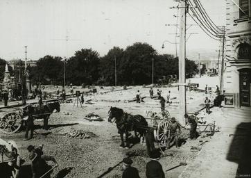 | Keywords: dunedin construction road historic queens gardens queensgardens rattray street rattraystreet snow outdoor blackandwhite black and white DCC Archives, Photo 330/35, Street Works - Lantern Slide Collection DCC Archives, Photo 330/35, Street Works - Lantern Slide Collection |