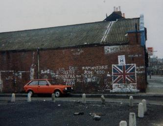 | Keywords: Loyalist mural south Belfast 1981.jpg en Loyalist mural in south Belfast taken in 1981 Murale Lealista a Belfast Irlanda del Nord nel 1981 Own Jeanne boleyn 1981-04 my own work one other on Wikipedia Belfast mural Murals in Belfast April 1981 in Northern Ireland 1981 in Belfast |