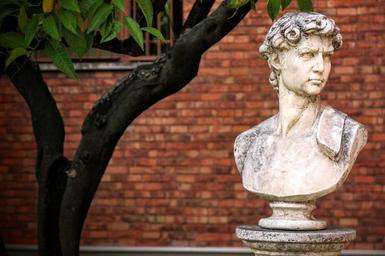 Keywords: loyola university chicago bust roman tree brick red green stone