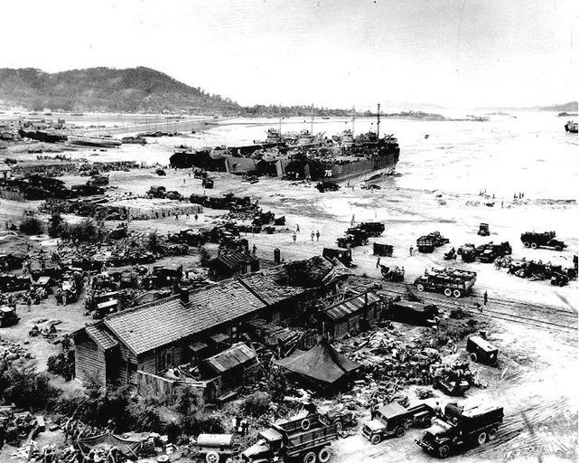 Keywords: LSTs unloading at Inchon.jpg Inchon Invasion Four w Landing Ship Tank LST s unload men and equipment while high and dry at low tide on Incheon 's Red Beach 16 September 1950 the day after the initial landings there USS DeKalb County LST-715 LST-715 is on the right end of this group which also includes USS Crook County LST-611 LST-611 USS Jefferson County LST-845 LST-845 and one other Another LST is beached on the tidal mud flats at the extreme right Note bombardment damage to the building in center foreground many trucks at work Wolmi-Do island in the left background and the causeway connecting the island to Inchon Ship in the far distance just beyond the right end of Wolmi-Do is USS Lyman K Swenson DD-729 USS Lyman K Swenson DD-729 1950-09-16 US Navy photo http //www navsource org/archives/10/16/1016061101 jpg 80-G-420027 now in the collection of the US National Archives Original uploaded by Mdhennessey Transfered by Finavon PD-USGov-Military-Navy original upload log page en wikipedia LSTs_unloading_at_Inchon jpg Upload date User Bytes Dimensions Comment 2007-05-30 03 57 56 Mdhennessey 137056 740×591 <small><nowiki>Inchon Invasion September 1950 Four LSTs unload men and equipment while high and dry at low tide on Inchon's Red Beach 16 September 1950 the day after the initial landings there LST-715 is on the right end of this group which also includes LST-611</nowiki></small> Battle of Inchon Tank landing ships Low tide in Korea |