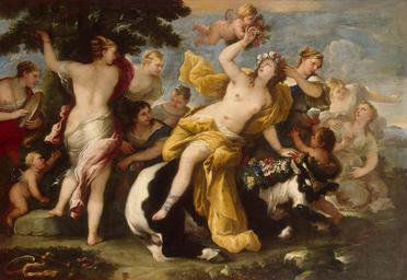 | Keywords: Luca Giordano - The Rape of Europa - WGA9005.jpg Artwork Creator Luca Giordano other date between 1675 1677 Oil on canvas size cm 205 304 Institution Hermitage Museum object history credit line accession number WGA link 9005 http //www wga hu/art/g/giordano/europa1 jpg http //www wga hu/html/g/giordano/europa1 html PD-old-100 painting mythological Italian 1651-1700 Paintings by Luca Giordano in the Hermitage 1675 1670s mythological paintings Paintings of the Rape of Europa Mythological paintings of putti People with cattle in art 1675 paintings 1676 paintings 1677 paintings Mythological figures in nature Paintings of people in nature 17th-century oil on canvas paintings in Russia 1670s paintings in Russia Mythological paintings in Russia 17th-century paintings in the Hermitage WGA form painting WGA type mythological WGA School Italian WGA time period 1651-1700 |
