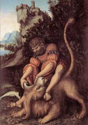 | Keywords: Lucas Cranach d. Ä. - Samson's Fight with the Lion - WGA05717.jpg Artwork Creator Lucas Cranach I between 1520 1525 Panel cm 56 7 38 Institution Kunstsammlungen Weimar object history credit line langSwitch Bezeichnet links unten mit nach rechts ausgerichtetem Schlangensignet mit aufstehenden Flügeln Artist's insignia bottom left winged serpent with elevated wings facing right Friedländer Rosenberg 1978 Nr FR140 accession number G12 WGA link 5717 http //www wga hu/art/c/cranach/lucas_e/06/3samson jpg http //www wga hu/frames-e html /html/c/cranach/lucas_e/06/3samson html PD-old-100 painting mythological German 1501-1550 DEFAULTSORT Cranach Lucas 1; Simson im Kampf mit dem Löwen; Schlossmuseum Weimar; 1520; WGA Mythological paintings by Lucas Cranach I Renaissance paintings in the Schlossmuseum Weimar Samson and the lion 16th-century paintings of Old Testament WGA form painting WGA type mythological WGA School German WGA time period 1501-1550 |