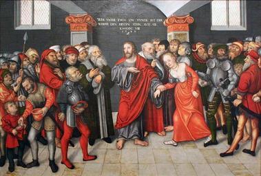 | Keywords: Lucas Cranach d. J. - Christus en de overspelige vrouw.JPG workshop of Jesus Christ and the woman taken in adultery 1549 oil canvas cm 114 176 Museum Bonnefantenmuseum 4034 44957 WER UNTER EVCH ON SVNDE IST DER / WERFFE DEN ERSTEN STEIN AVFF SIF / IOHANN VIII top centre 1549 date top centre Object history ProvenanceEvent loan Bonnefantenmuseum Rijksdienst voor het Cultureel Erfgoed http //collectie icn nl/frmDetails aspx obs_guid 4c8c68b8-6c9e-4fb0-90e7-4dfee99b61b9 NK1797 Ophelia2 Artwork PD-old-100 Photo DEFAULTSORT Cranach Lucas 2; Christ and the Adulteress; Bonnefantenmuseum; 1549 Paintings by Lucas Cranach the Younger 1549 paintings Paintings with years of production artist 1540s paintings in the Netherlands 16th-century oil on canvas paintings in the Netherlands 16th-century religious paintings in the Netherlands Bible quotations 16th-century paintings of Jesus Christ and the woman taken in adultery Paintings with inscriptions German paintings in the Bonnefantenmuseum 1540s paintings from Germany Files by User Ophelia2 German inscriptions in art 1540s religious paintings |