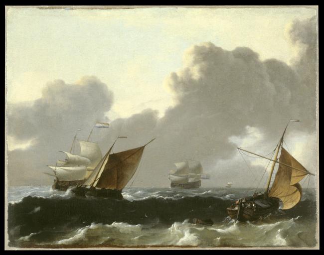Keywords: Ludolf Backhuysen I - Storm At Sea - Walters 37340.jpg Backhuysen's seascapes demonstrate the simple harmonious proportions found in many Dutch depictions of the ocean water occupies about one quarter of the compositions while ships silhouetted against an immense cloudy sky occupy the remainder This recreates the experience of being out on the water; indeed Backhuysen hired fishermen to take him out in storms to study wind and waves This painting is from the 1660s the artist's best period His fame was such that in 1697-98 when the Russian tsar Peter the Great visited the Dutch Republic to study European shipbuilding and the arts Backhuysen was asked to teach him painting between 1660 1669 Baroque Oil on canvas cm 53 4 68 6 accession number 37 340 37794 Gilmor Collection Henry Walters Baltimore prior to 1909 mode of acquisition unknown Walters Art Museum Henry Walters Acquired by Henry Walters before 1909 World of Wonder The Walters Art Gallery Baltimore 1971-1972 place of origin Amsterdam Netherlands Walters Art Museum license 2D Baroque paintings in the Walters Art Museum Ludolf Bakhuizen Media contributed by the Walters Art Museum needs category review Wind in paintings |