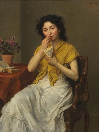 Keywords: Ludwig Knaus - Die Naschkatze (1897).jpg Artwork Creator Ludwig Knaus 1897 oil canvas cm 51 39 5 accession number object history Privatbesitz Berlin um 1949 <br/>Galerie Koller Zürich Auktion 41/2 25 Mai 1979 Lot 5250 als Das Leckermaul <br/>Kunsthandlung Erdmut Pluntke Berlin<br/>Kunsthandlung C Kaupa Karlsruhe Mai 1989<br/>Privatsammlung Süddeutschland credit line exhibition history L Knaus / 1897 ~ upper right signature / date http //www kettererkunst de/kunst/kd/details php obnr 114000857 anummer 413 Ketterer Kunst Hamburg Auktion 413 am 24 05 2014 lot 236 PD-old-auto-1923 1910 DEFAULTSORT Knaus Ludwig; Portrait female 1897 Ketterer 2014 Paintings by Ludwig Knaus Portrait paintings of women Human head tilting Self care Hair in art Sitting People with flowers 1890s portrait paintings Images from Ketterer Kunst |