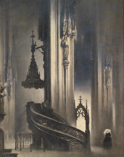 Keywords: Ludwig Rösch Stephansdom Pilgramkanzel.jpg Die Pilgramkanzel in St Stephan signiert L Rösch Pastell auf Papier 65 x 52 cm http //www dorotheum com by 1936 Creator Ludwig Rösch PD-Art Images from Dorotheum St Stephen's Cathedral in art Pulpit in St Stephen's Cathedral Vienna Paintings of church interiors Pastel drawings Paintings of buildings in Vienna Ludwig Rösch