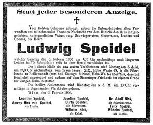 | Keywords: Ludwig Speidel Todesanzeige 1906.jpg en death notice of Ludwig Speidel 1830 “1906 German writer music theater and literary critic Ludwig Speidel 11 April 1830 in Ulm ” 3 Februar 1906 in Wien Schriftsteller Musik- Theater- und Literaturkritiker Neue Freie Presse 4 Februar 1906 S 29<br /> http //anno onb ac at/cgi-content/anno apm 0 aid nfp datum 19060204 seite 29 1906-02-04 unknown; perhaps a member of his family PD-old Death notice Male writers from Germany Neue Freie Presse Burgtheater 1830 births 1906 deaths 1906 PD-old |