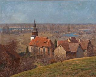 | Keywords: Ludwig Zorn Kleinkems 1909.jpg Kleinkems am Oberrhein Originaltitel Öl auf Leinwand rechts unten signiert und datiert 19 09 mit Ortsangabe Freiburg im Breisgau Verso vom Künstler bezeichnet und betitelt 72 5 cm x 91 cm Das Bild zeigt den Zustand der Evangelischen Kirche Kleinkems vor dem Bau des neuen Kirchturms 1898 http //schloss-ahlden de/ Kunstauktionshaus Schloss Ahlden 1909 Creator Ludwig Zorn PD-old-auto-1923 1921 Images from Kunstauktionshaus Schloss Ahlden Kleinkems Paintings of German villages 1909 paintings Evangelische Kirche Kleinkems |