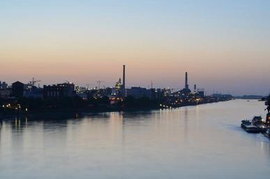 Keywords: ludwigshafen port rhine bridge industry basf evening river water