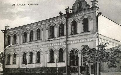 Keywords: Luhansk Synagogue.jpg ru Хо альная синагога Бывшая ул Банковская Т Шевченко Луганск before 1917 Отк ытка author Custom license marker 2013 08 27 PD-Ukraine Uploaded with UploadWizard Synagogues in Luhansk Oblast Buildings in Luhansk Historical images of Luhansk