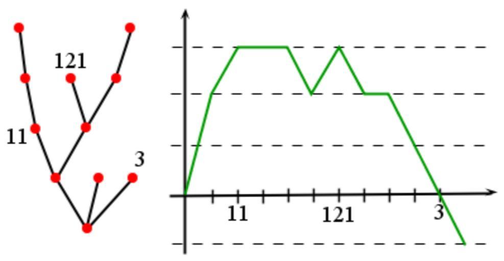 Keywords: Lukasiewicz.png fr marche de Lukasiewicz own Ipipipourax 2011 Cc-zero Check categories 2011 October 15 fr wikipedia Arbre_de_Galton-Watson 1 Probability theory Tree diagrams