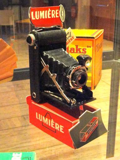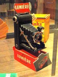 | Keywords: Lumiere camera - Musée Nicéphore Niépce - DSC06002.JPG Lumière Lumirex camera 1940s Exhibit in the Musée Nicéphore Niépce 28 Quai Messageries Saône-et-Loire France There were no restrictions on photography in the museum I took this photograph 2011-04-27 10 18 05 Daderot Public domain Musée Nicéphore Niépce Lumière cameras |