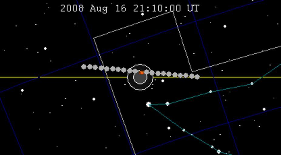 Keywords: Lunar eclipse chart-08aug16.png en wikipedia 2011 October 18 August 2008 lunar eclipse chart The position of the moon and earth's shadow are shown as viewed from center of earth A small parallax effect occurs from specific location on surface of the earth The yellow line is the plane of the ecliptic path of the sun through the sky and hence the center of the earth's shadow The two concentric circles centered on this line show the extent of the umbra and penumbra the zones of full and partial shadow respectively for an object in the moon's orbit The moon is drawn at maximum eclipse and circles for every hour interval of motion thumb 2008-2-24 Own <br />Transferred from http //en wikipedia org en wikipedia Tomruen at http //en wikipedia org en wikipedia en wikipedia Tomruen Original upload log page en wikipedia Lunar_eclipse_chart-08aug16 png 2008-02-24 00 14 Tomruen 773×493 28998 bytes <nowiki>16 August 2008 lunar eclipse chart The position of the moon and earth's shadow are shown as viewed from center of earth A small parallax effect occurs from specific location on surface of the earth The yellow line is the plane of the ecliptic </nowiki> 2009-04-15 01 49 SockPuppetForTomruen 416×230 9203 bytes <nowiki>replace</nowiki> Lunar eclipse of 2008 February 21 1989 in astronomy 21st century lunar eclipses |