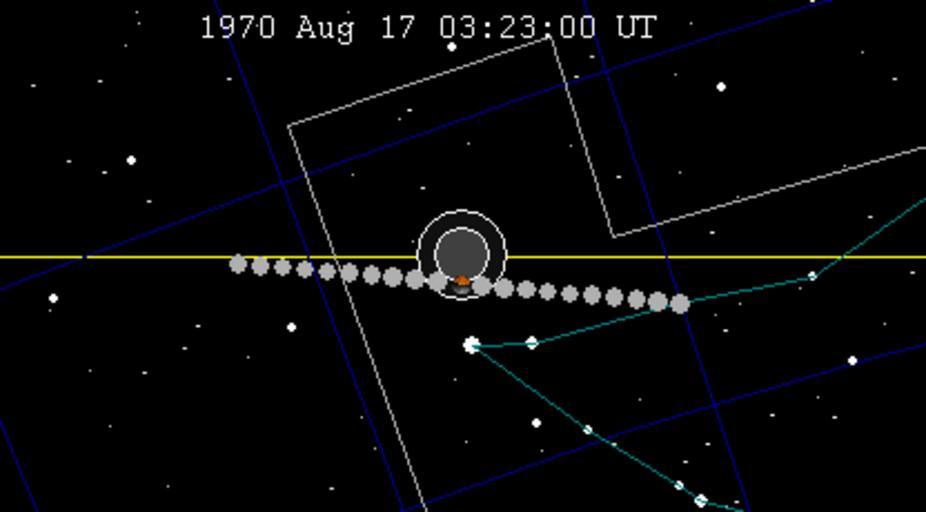 Keywords: Lunar eclipse chart-1970Aug17.png en wikipedia 2011 October 24 August 1970 lunar eclipse chart The position of the moon and earth's shadow are shown as viewed from center of earth A small parallax effect occurs from specific location on surface of the earth The yellow line is the plane of the ecliptic path of the sun through the sky and hence the center of the earth's shadow The two concentric circles centered on this line show the extent of the umbra and penumbra the zones of full and partial shadow respectively for an object in the moon's orbit The moon is drawn at maximum eclipse and circles for every hour interval of motion thumb 2009-4-11 Own <br />Transferred from http //en wikipedia org en wikipedia SockPuppetForTomruen at http //en wikipedia org en wikipedia en wikipedia SockPuppetForTomruen Original upload log page en wikipedia Lunar_eclipse_chart-1970Aug17 png 2009-04-11 05 53 SockPuppetForTomruen 679×493 11984 bytes <nowiki> Summary August 1970 lunar eclipse chart The position of the moon and earth's shadow are shown as viewed from center of earth A small parallax effect occurs from specific location on surface of the earth The yellow line is the plane of the</nowiki> 2009-04-15 01 48 SockPuppetForTomruen 416×230 9174 bytes <nowiki>replace</nowiki> Lunar eclipse of 2008 February 21 1989 in astronomy 21st century lunar eclipses |