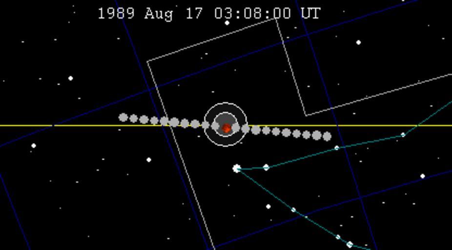 Keywords: Lunar eclipse chart-1989Aug17.png en wikipedia 2011 October 24 August 1989 lunar eclipse chart The position of the moon and earth's shadow are shown as viewed from center of earth A small parallax effect occurs from specific location on surface of the earth The yellow line is the plane of the ecliptic path of the sun through the sky and hence the center of the earth's shadow The two concentric circles centered on this line show the extent of the umbra and penumbra the zones of full and partial shadow respectively for an object in the moon's orbit The moon is drawn at maximum eclipse and circles for every hour interval of motion thumb 2009-4-11 Own <br />Transferred from http //en wikipedia org en wikipedia SockPuppetForTomruen at http //en wikipedia org en wikipedia en wikipedia SockPuppetForTomruen Original upload log page en wikipedia Lunar_eclipse_chart-1989Aug17 png 2009-04-11 05 53 SockPuppetForTomruen 679×493 12028 bytes <nowiki> Summary August 1989 lunar eclipse chart The position of the moon and earth's shadow are shown as viewed from center of earth A small parallax effect occurs from specific location on surface of the earth The yellow line is the plane of the</nowiki> 2009-04-15 01 48 SockPuppetForTomruen 416×230 9280 bytes <nowiki>replace</nowiki> Lunar eclipse of 2008 February 21 1989 in astronomy 21st century lunar eclipses |