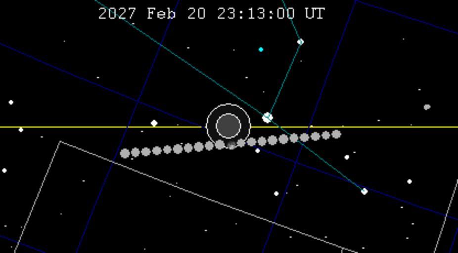 Keywords: Lunar eclipse chart-2027Feb20.png en wikipedia 2011 October 24 February 2027 lunar eclipse chart The position of the moon and earth's shadow are shown as viewed from center of earth A small parallax effect occurs from specific location on surface of the earth The yellow line is the plane of the ecliptic path of the sun through the sky and hence the center of the earth's shadow The two concentric circles centered on this line show the extent of the umbra and penumbra the zones of full and partial shadow respectively for an object in the moon's orbit The moon is drawn at maximum eclipse and circles for every hour interval of motion thumb 2009-4-11 Own <br />Transferred from http //en wikipedia org en wikipedia SockPuppetForTomruen at http //en wikipedia org en wikipedia en wikipedia SockPuppetForTomruen Original upload log page en wikipedia Lunar_eclipse_chart-2027Feb20 png 2009-04-11 05 52 SockPuppetForTomruen 679×493 11367 bytes <nowiki> Summary February 2027 lunar eclipse chart The position of the moon and earth's shadow are shown as viewed from center of earth A small parallax effect occurs from specific location on surface of the earth The yellow line is the plane of t</nowiki> 2009-04-15 01 50 SockPuppetForTomruen 416×230 9264 bytes <nowiki>replace</nowiki> Lunar eclipse of 2008 February 21 1989 in astronomy 21st century lunar eclipses |