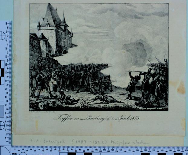 | Keywords: Lüneburg Schlacht 18130402 9082.jpg  Die Bilder enstanden anläßlich eines Workshops im Rahmen von Skillshare 2010 in Zusammenarbeit mit dem Stadtarchiv Lüneburg Die Originale wurden freundlicherweise vom Stadtarchiv zur Verfügung gestellt Truppen vor Lüneburg am 2 April 1813 F A Frenzel 1782-1855 Kupferstecher Registratur K 10 Nr 57 k Reproduction own 2010-06-04 F A Frenzel Lüneburg Schlacht 1813 jpg 53 2459671 10 4084140 PD-old Skillshare 2010 Stadtarchiv Stadtarchiv Lüneburg De Wikisource book leaflet Lüneburg in the 1810s Joergens mi Historical images of Lüneburg 1813 in Lower Saxony Befreiungskriege Jömi 201010 Taken with Pentax K20D |