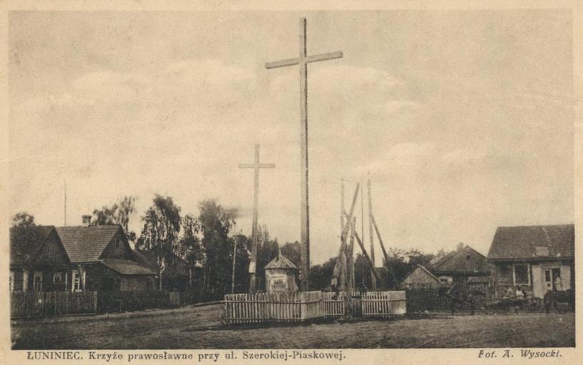 | Keywords: Luninets - Orthodox crosses on Shyrokaya street - 1920s AD.jpg en Luninets town Poland Western Belarus - Orthodox crosses on Shyrokaya street 1920s AD ru г Лунинец Польша Западная Бела усь - п авославные к есты на улице Ши окой-Песковой Фото между 1921-1939 гг be г Лунінец Польшча Заходняя Бела усь - п аваслаўныя к ыжы на вуліцы Шы окай-Пясковай Фота паміж 1921-1939 гг https //polona pl/item/1032537/0/ - free polish digital library A Wysocki before 1939 AD public domain in Poland PD-Polish PD-old Orthodox crosses in Belarus |