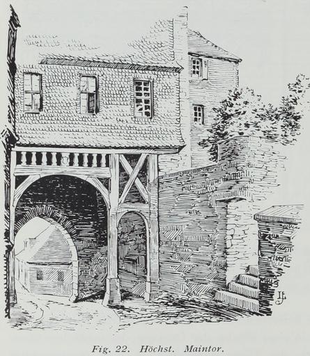 Keywords: Luthmer II-022-Höchst Maintor.jpg Höchst Maintor Kulturdenkmal Hessen 1905 Die Bau- und Kunstdenkmäler des Lahngebiets Keller Frankfurt am Main 1907 https //archive org/details/bauundkunstdenkm03luth Ferdinand Luthmer PD-old-70-1923 Images from Bau- und Kunstdenkmäler des Regierungsbezirks Wiesbaden Volume 2 Frankfurt-Höchst Uploaded with VicuñaUploader |