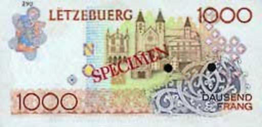 Keywords: LUX-1000f-rev.jpg lb 1 000 frang es 1 000 francos Banque Centrale du Luxembourg Banque Centrale de Luxembourg banknote European Central Bank photo Money-EU Banknotes of Luxembourg Banknotes with a face value of 1000