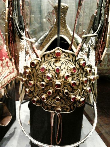 | Keywords: Lviv Ruby tack 02.jpg Lviv secondhalf other date century 17 silver thread silk velvet leather wood niello ruby gold cm 18 16 43 Institution District Museum in Tarnów Town Hall accession number MT IV 559 MT IV 492 MT IV 493 MT IV 491 object history credit line Parade tack created in Armenian workshops in Lviv Lwów http //www it tarnow pl/index php/pol/Atrakcje/TARNOW/Zabytki-i-atrakcje/Skarby-muzeow/Rzad-rubinowy www it tarnow pl own See below cc-zero DEFAULTSORT 1650-1700; Ruby tack Ruby tack in the District Museum in Tarnów |