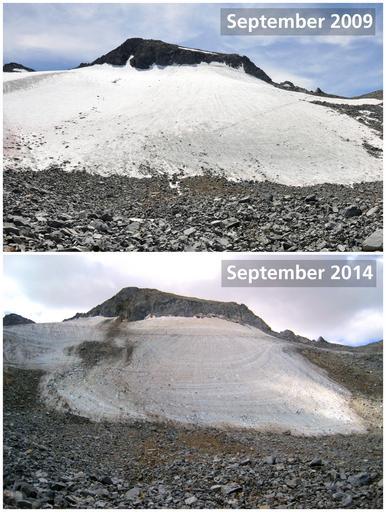 | Keywords: nps ccrp climate change climatechange global warming globalwarming lyell glacier yosemite tbt throwbackthursday outdoor We're saying goodbye to an old friend in Yosemite National Park. The Lyell Glacier - second largest in the Sierra Nevada - has thinned rapidly over just the last few years. Note the newly exposed bedrock on the east (left) side; it's estimated the glacier may now be only 15-20 feet thick. Currently the glacier is losing on average about three feet of thickness each year. How much longer until it's gone? For more photos and to learn more about annual Lyell Glacier surveys, check out the Yosemite Ranger Notes blog. Learn why the glacier is no longer really considered a "glacier" anymore. Photos: Greg Stock/NPS We're saying goodbye to an old friend in Yosemite National Park. The Lyell Glacier - second largest in the Sierra Nevada - has thinned rapidly over just the last few years. Note the newly exposed bedrock on the east (left) side; it's estimated the glacier may now be only 15-20 feet thick. Currently the glacier is losing on average about three feet of thickness each year. How much longer until it's gone? For more photos and to learn more about annual Lyell Glacier surveys, check out the Yosemite Ranger Notes blog. Learn why the glacier is no longer really considered a "glacier" anymore. Photos: Greg Stock/NPS |