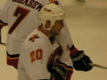 Keywords: Lynn Loyns.jpg Lynn Loyns while warmup in Anaheim Own 2004-04-04 Horge Ice hockey players from Saskatchewan Calgary Flames players