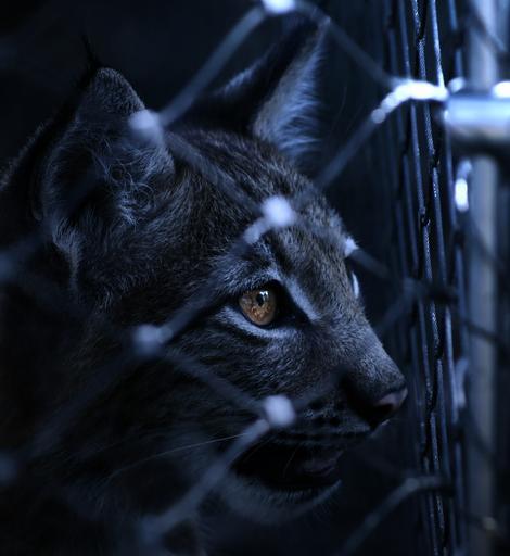 Keywords: lynx caught imprisoned fence view eye night dark at night mammal cat