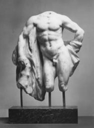 | Keywords: Lysippos - Torso of Hercules Resting (Fragment) - Walters 2365.jpg This marble torso is a fragment of a small-scale copy of a famous lost bronze statue by the Greek sculptor Lysippus ca 320 BC of the hero Hercules leaning on his club after completing the last of his labors retrieving the golden apples of the Hesperides which he holds in his left hand behind his back In the 1600s the bronze statue was known through the marble copy made in the 3rd century by the sculptor Glykon discovered in Rome in 1546 and acquired by the Farnese family for their palace there Knowledge of the statue was dispersed by full-scale plaster casts and small-scale copies in bronze such as that in Case III By the 1590s Archduke Ferdinand of Austria uncle of Archduke Albert and an important collector within the Habsburg family owned an antique marble torso of Hercules that is similar to the Walters' piece His is now considered a 16th-century forgery; the Walters' piece may be as well 100 BC-AD 100 Roman marble cm 25 7 accession number 23 65 20681 Dattari Sale Cairo no 336 from Egypt Henry Walters Baltimore after 1912 by purchase Walters Art Museum Henry Walters Acquired by Henry Walters Déjà Vu The Repeating Image in Renaissance and Baroque Art The Walters Art Museum Baltimore 2007-2008 place of origin Greece Walters Art Museum license Ancient Greek sculptures in the Walters Art Museum Ancient Roman sculptures in the Walters Art Museum Lysippos Media contributed by the Walters Art Museum needs category review Media contributed by the Walters Art Museum needs artist update |