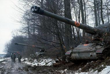 | Keywords: M110A2 REFORGER 85.JPEG M110A2 203mm self-propelled howitzers of the 40th Field Artillery are deployed along a line of trees during Central Guardian a phase of Exercise REFORGER '85 near Weitershain Landkreis Gießen http //www defenseimagery mil/imagery html a search s DF-ST-85-13238 guid 918ce2a101951901d2d797ad997fe6debd5e52a5 1985-01-22 TSGT BOYD BELCHER PD-USGov M110 203 mm self-propelled howitzer REFORGER 1985 | ||||