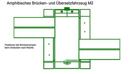 | Keywords: M2 Andocken.png en Amphibious bridge vehicle M2 vehicle with ramps in position for docking to the left side of another de Amphibisches Brücken- und à bersetztfahrzeug M2 Positionen der Brückenrampen beim Fähren- oder Brückenbau mit Andocken nach rechts own Steinbeisser 2 2 11 Cc-zero Schwimmschnellbrücke M2B |