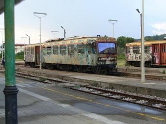 | Keywords: M4c lido.jpg en M4c 350 railcar is arrived at Catanzaro Lido it Automotrice M4c serie 350 in arrivo a Catanzaro Lido Own ShayParkman Stazione FCL di Catanzaro Lido FC M4 Catanzaro Lido train station FC Graffiti on rolling stock in Catanzaro July 2006 in Catanzaro Taken with Panasonic Lumix DMC-LZ2 2006 in rail transport in Italy |